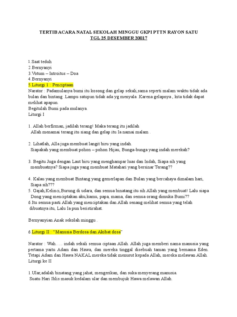 Ajak dan libatkan seluruh guru sekolah minggu untuk. Naskah drama natal tentang sekolah minggu. Acara ini dilaksanakan pada minggu 15 desember. Doc acara natal sekolah minggu hkbp tridarma ressort. Peraturan dan tata tertib, yang ada di sekolah, sangat penting untuk dibuat, disosialisasikan, dan diterapkan.