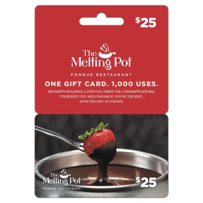 Melting Pot Gift Card Sam's Club : I was unable to speak to the gift card department at any point when i ran into issues.. Available in amounts of $25, $50, $75 and $100. 45 day buyer protection guarantee. Gift cards may be redeemed at walmart stores, walmart.com, sam's club, and samsclub.com by sam's club members. A sam's club membership is regularly $45, so after the gift card back this is like getting a free membership! The melting pot gift cards.